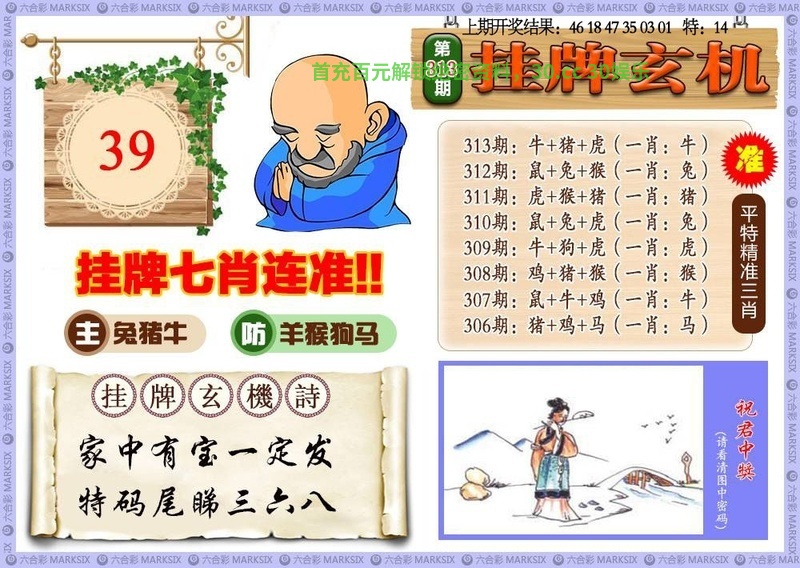 | 308期 | 马牛 | 06合 | 4头双 | 兔39 |